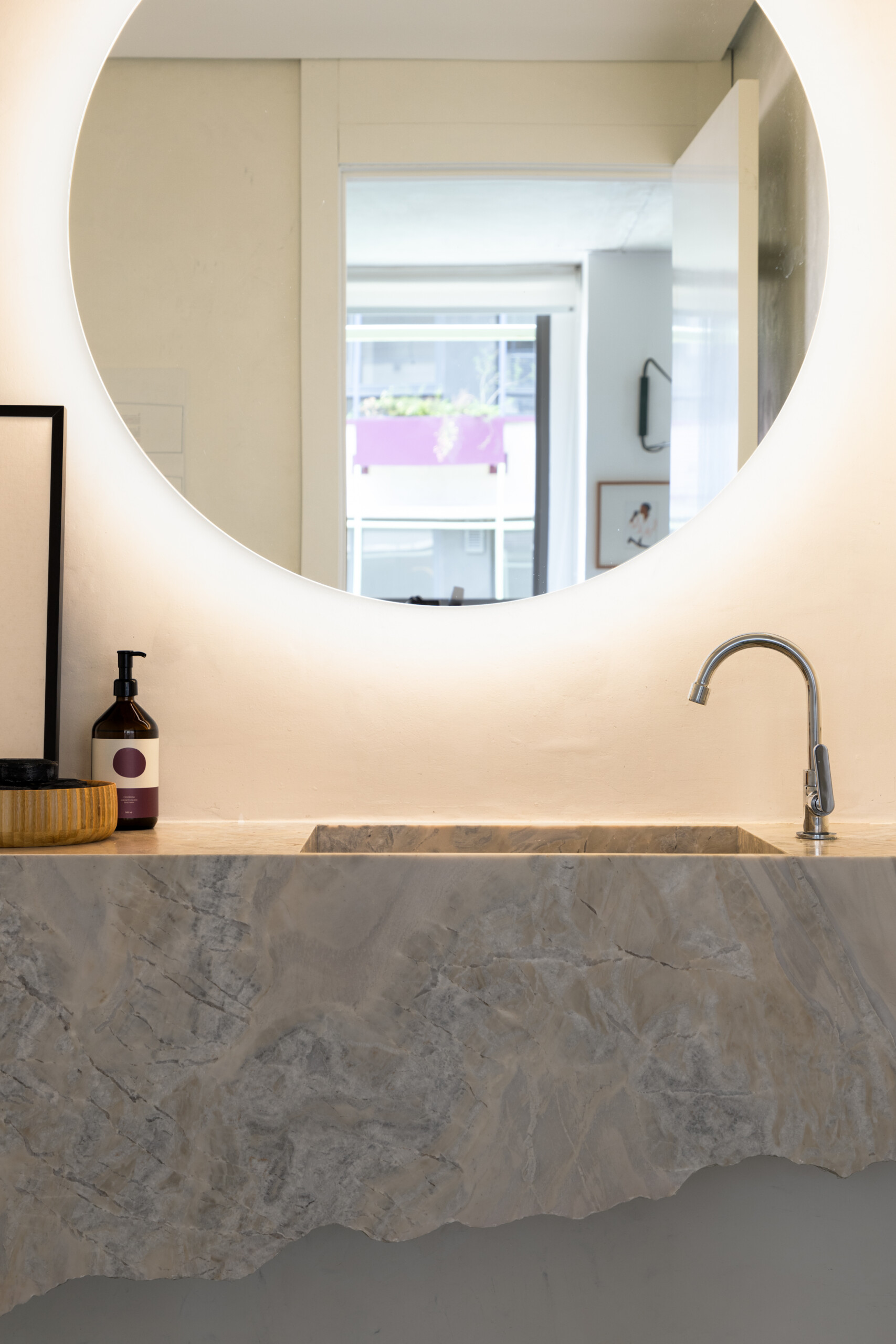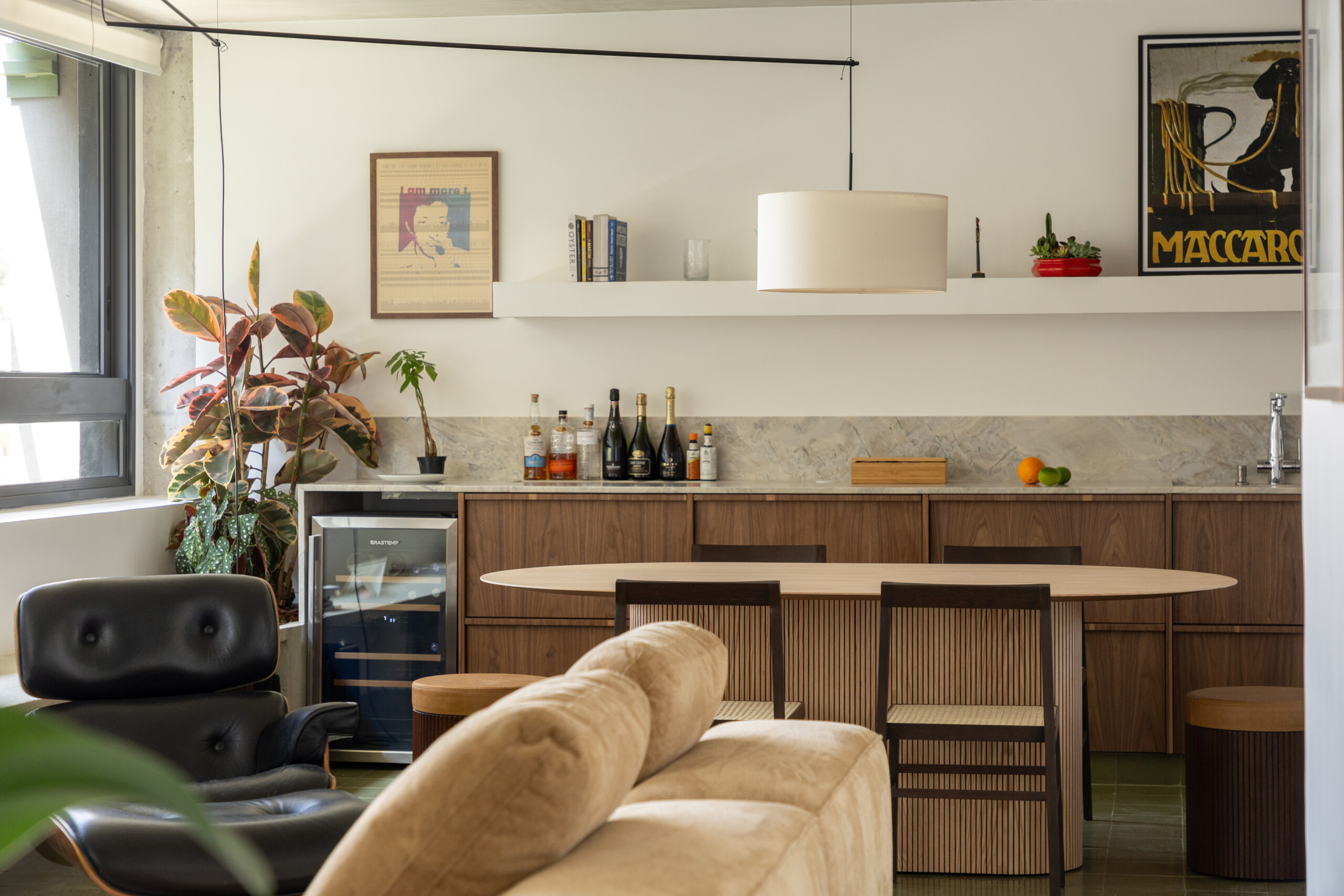 O resultado é um apartamento que equilibra o bruto e o delicado — a síntese de todo o partido.